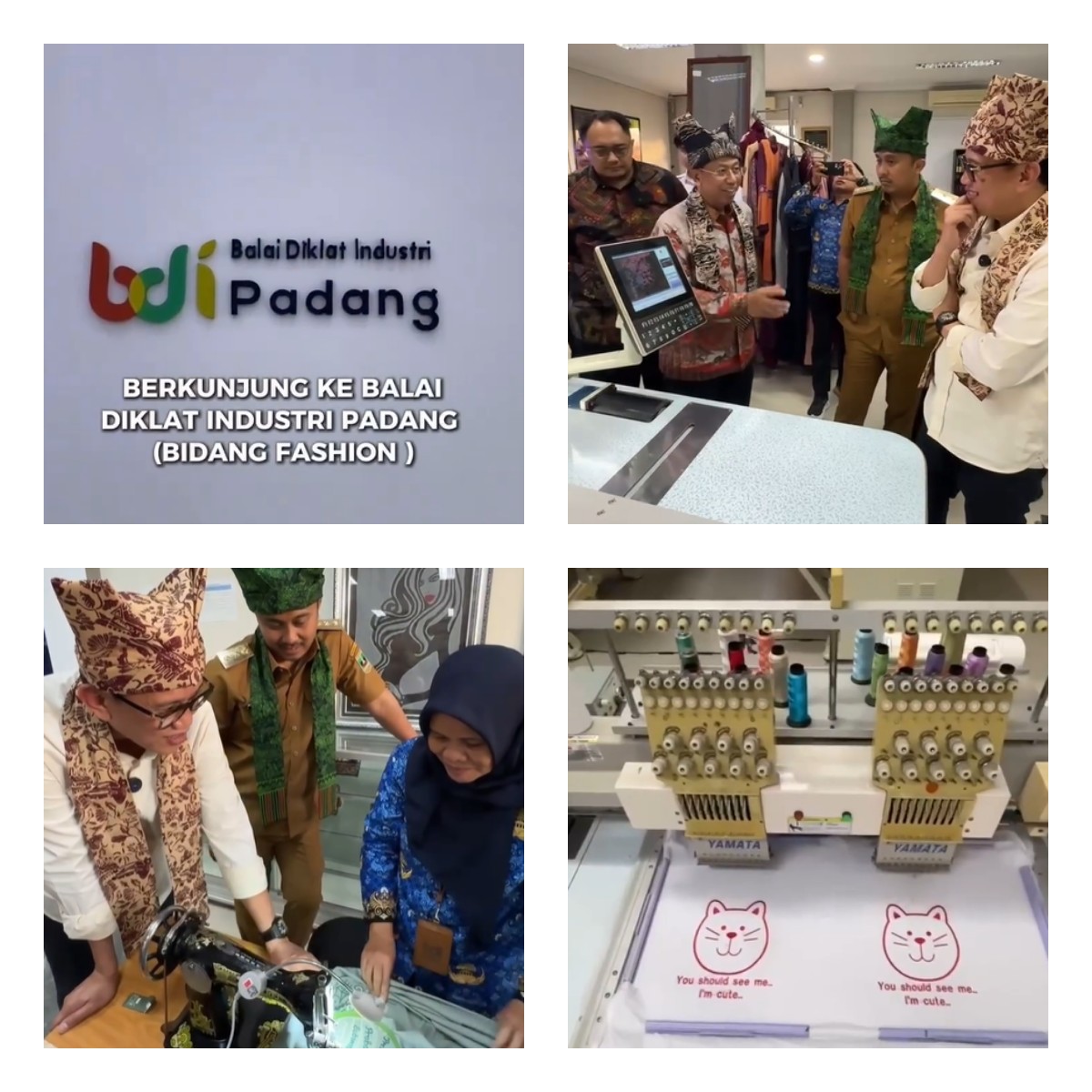 Wakil Gubernur Sumatera Barat, Bapak Vasco Ruseimy beserta Mentri P2MI, Bapak Abdul Kadir Karding berkunjung ke Balai Diklat Industri Padang yang berfokus di Bidang Fashion. Di sana mereka melihat proses pelatihan menjahit dan mengobrol dengan beberapa peserta pelatihan.
