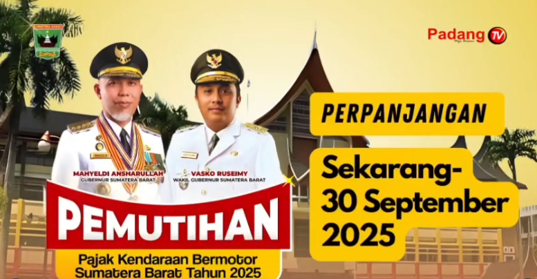 Pemerintah Provinsi Sumatera Barat kembali memberikan kabar gembira bagi pemilik kendaraan bermotor. Program Pemutihan Pajak Kendaraan Bermotor 2025 resmi diperpanjang hingga 30 September 2025.